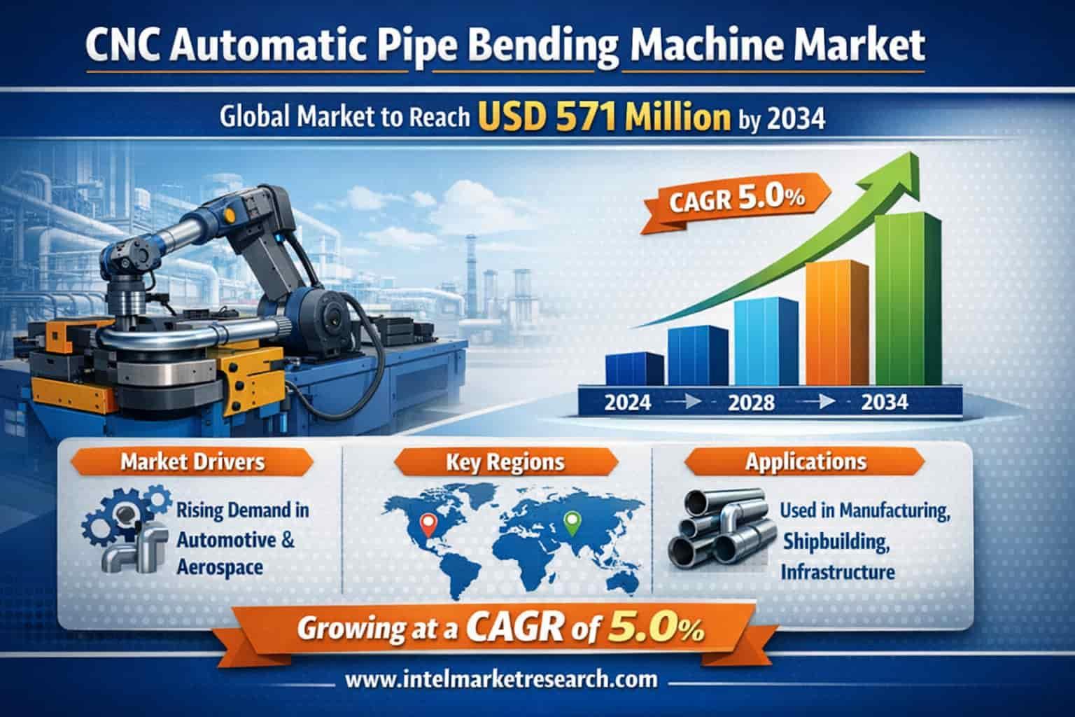 • Global CNC Automatic Pipe Bending Machine Market to Reach USD 571 Million by 2034, Growing at a CAGR of 5.0%