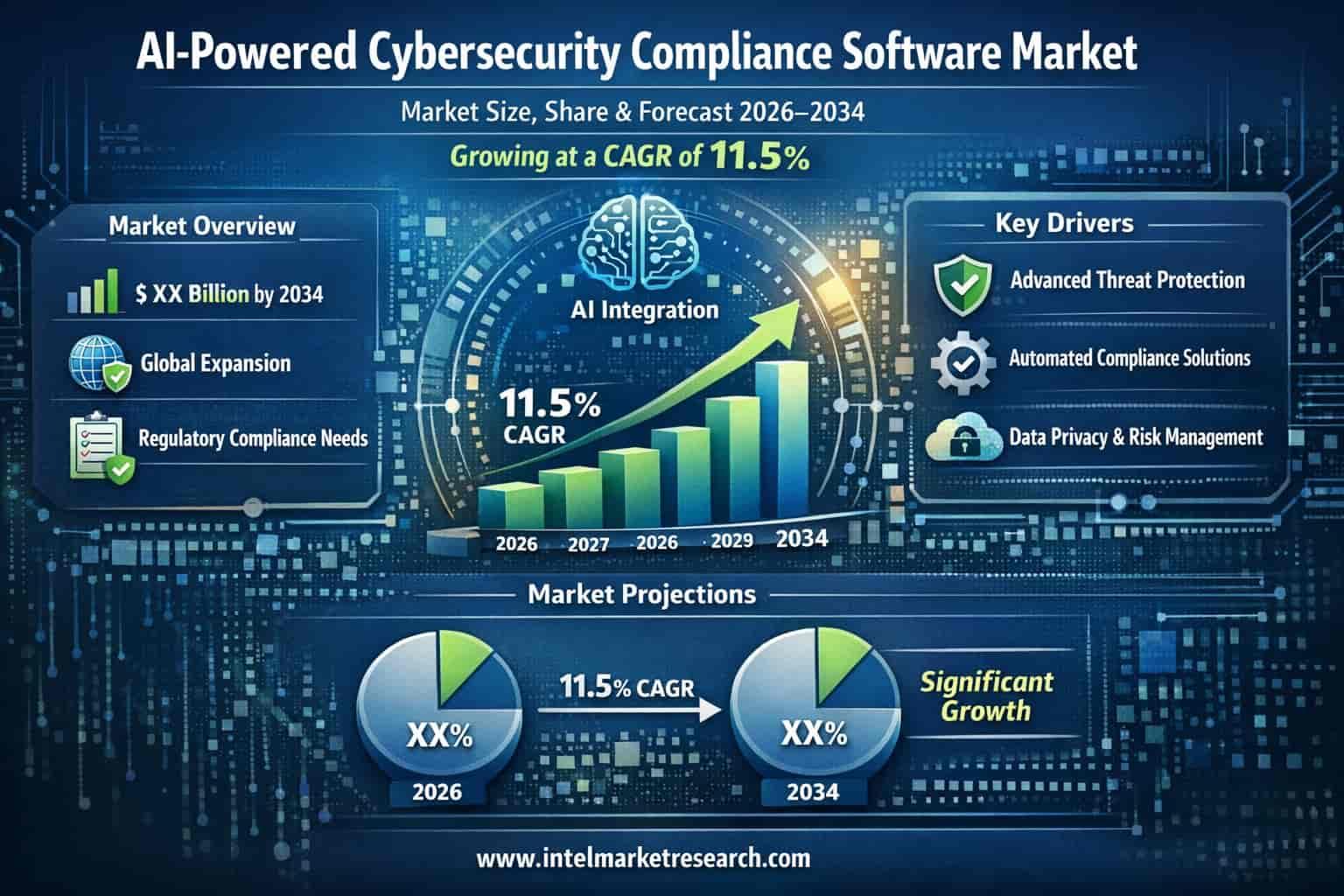 AI Powered Cybersecurity Compliance Software Market Size, Share, and Forecast 2026–2034, Growing at a CAGR of 11.5% According to a new report from Intel Market Research, the global AI Powered Cybersecurity Compliance Software market was valued at USD 3.45 billion in 2025 and is projected to reach USD 9.87 billion by 2034, growing at a remarkable CAGR of 11.5% during the forecast period (2026-2034). đŸ“„ Download Sample Report: https://www.intelmarketresearch.com/download-free-sample/37142/ai-powered-cybersecurity-compliance-software-market 🌐 Website: https://www.intelmarketresearch.com 📞 Asia-Pacific: +91 9169164321 🔗 LinkedIn: Follow Us